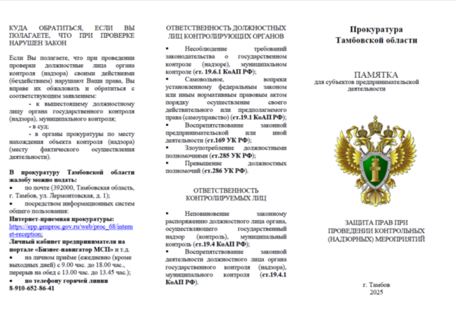 ПОЛЕЗНЫЕ ПАМЯТКИ ПРОКУРАТУРЫ ТАМБОВСКОЙ ОБЛАСТИ
