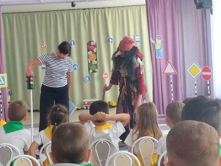 14 августа 2025 г в нашем дошкольном учреждении прошло мероприятие по профилактике дорожно-транспортных происшествий. Вместе с Бабой Ягой дети повторяли дорожные знаки, правила поведения пешеходов на дороге. Также воспитанники посоревновались в веселых эстафетах, а в завершении станцевали танец «Светофор»